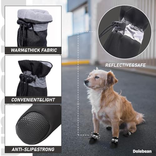 🐕Adjustable Drawstring – The durable drawstring with the plastic cord lock toggle stopper is very flexible to help make it comfortable around the ankle so that you do not cut off circulation. And will be easy to put on, take off and stay at the dog paws. The reflective straps ensure tight fit and safety during night walking.