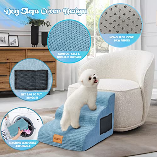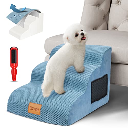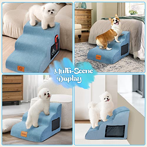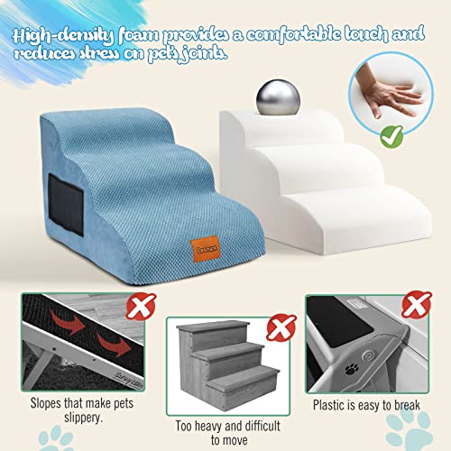 - 【High Density Foam】-Dog stairs for small dogs are made of high-density sponge, with the advantages of high resilience and not easy to deformation. Sponge dog ladder does not require complex installation, easy to move. The dog step provides great comfort when the pet goes up and down the stairs.