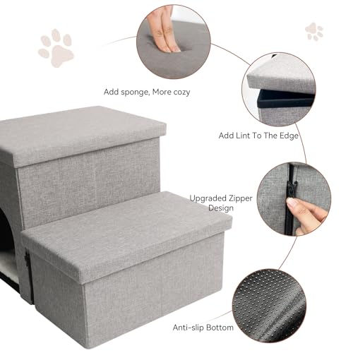- 🐾【3-IN-1 DOG STAIRS AND CONDO】: These Zerbuger pet stairs not only provide a stable and cozy place for your pet to rest, but also serve as a convenient storage area for your pet’s clothes, toys, or any other supplies. The pet steps are covered with removable lids, Every steps are designed as storage boxes.