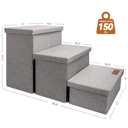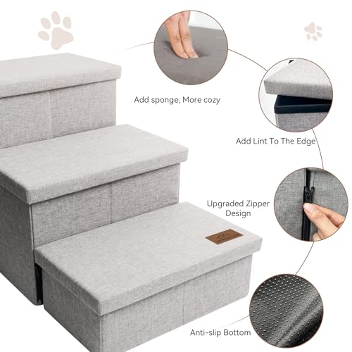 🐾【3-IN-1 DOG STAIRS AND CONDO】: These Zerbuger pet stairs not only provide a stable and cozy place for your pet to rest, but also serve as a convenient storage area for your pet’s clothes, toys, or any other supplies. The pet steps are covered with removable lids, Every steps are designed as storage boxes.