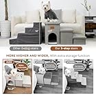 🐾【HIGHER STEPS & HOME DECOR】: Stairs size 30.6″D x17″Wx17.1″H. The pet stairs help your pets get on a high bed, couch. Besides, its modern look can be an elegant décor in your house.