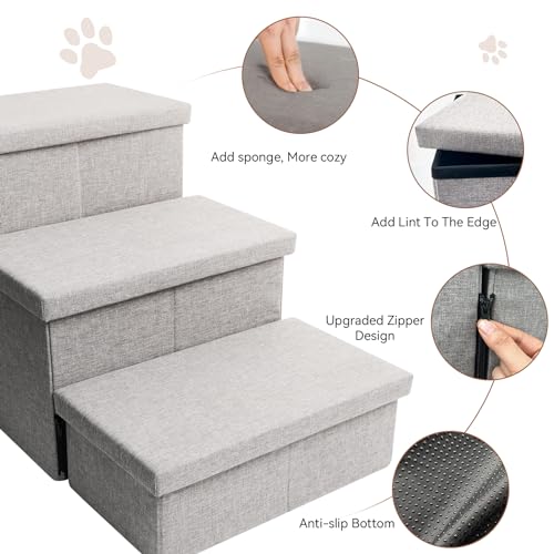 - 🐾【QUICK AND CONVENIENT ASSEMBLY】: Zerbuger dog stairs come with detailed assembly instructions, making it quick and convenient to install. You can use the zipper to link the steps together and add the bottom pad for a sturdy dog stairs. When not in use, you can simply fold the steps away.