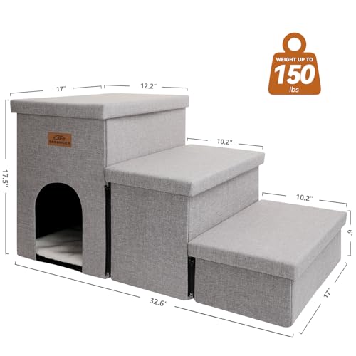 - 🐾【MORE STABLE AND COZY】: Zerbuger dog stairs are made of MDF and include sponge, which relieves pressure on pets’ paws and joints. They are particularly suitable for small dogs and elderly dogs. The removable board pads are placed inside to ensure that the pet steps are stable enough without any wobbling. The non-slip bottom ensures that the pet steps don’t move. The dog stairs can support up to 150 lbs.