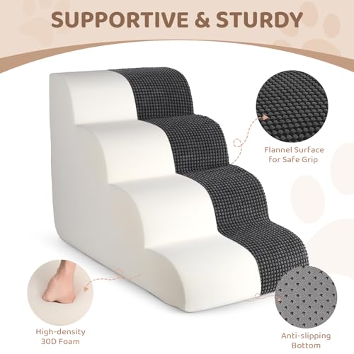 - 🐇Supportive & Steady: These pet stairs for large dogs adopt with 30D high-density pure foam, featuring supportive and lightweight. Generally, it can provide stable support for small/medium-sized dogs and other pets under 45 lbs. The non-slip corduroy pet stair cover increases extra grip while in use. The bottom features non-slip rubber dots, preventing pets from sliding while climbing up and down.