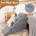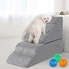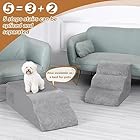 Dog Stairs for High Beds, 5-Steps Foam Ramps for Small Dogs, Non-Slip Bottom and Removable Cover, for Older and Injured Pets to Get On Bed and Couch, Grey