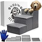 Dog Stairs for High Beds or Couch- Foldable Dog Steps W/Storage- Pet Steps for Small Dogs, Medium Dogs, Puppy Stairs- Use as a Dog Window Perch or Cat Stairs for Old Cats- Dog Grooming Glove Included