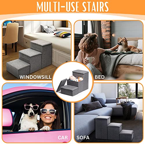 - ๐งธ Store Toys & Treats Inside- These bed steps for dogs are ergonomically designed, with storage compartments inside the 3 steps. Put all your favorite toys, treats, leashes and more in here and reduce clutter!