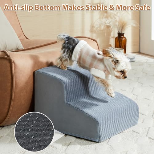 - 【Sturdy Support】The high-density support foam of the dog stairs for bed, Like a sturdy bridge, Whether it’s a kitten or a large dog, All can pass with safe, Pet stairs provides a sturdy climbing path for your pets.
