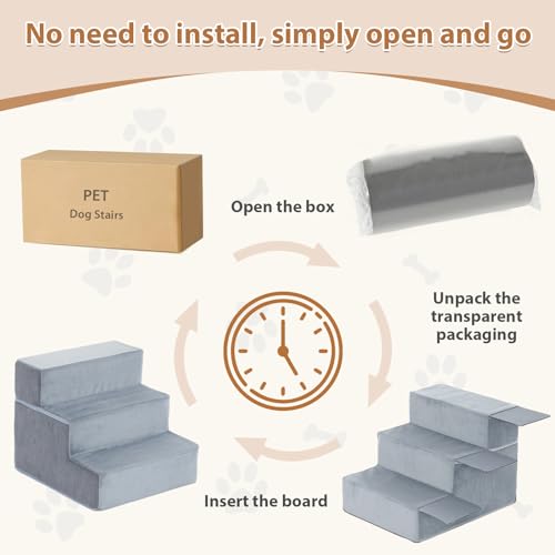 - 【No Installation Required】Dog bed steps are packaged in an integrated vacuum compression, Eliminating cumbersome installation steps. Simply open the packaging of doggy stairs, And the dog steps for couch will naturally expand within 24 hours, Creating a convenient climbing pathway for your pet with ease!