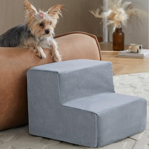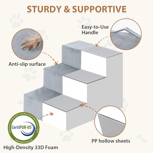- 【Sturdy Support】The high-density support foam of the dog stairs for bed, Like a sturdy bridge, Whether it’s a kitten or a large dog, All can pass with safe, Pet stairs provides a sturdy climbing path for your pets.