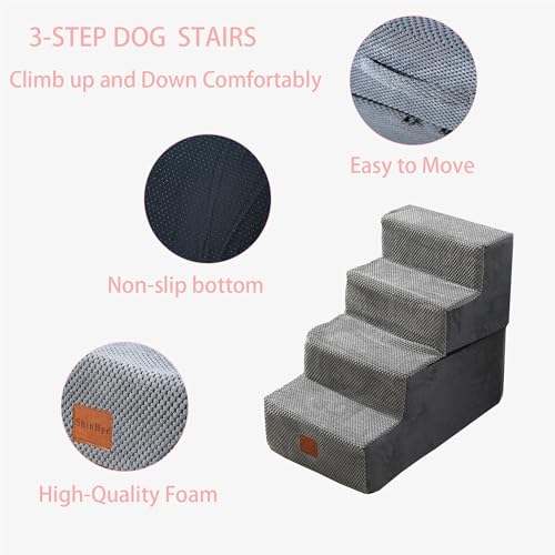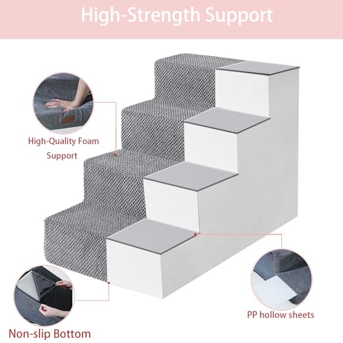 - High-Quality Filling: Crafted with care, our dog steps features a durable and sturdy high-density foam core that can makes these pet stairs easy to move. High-density, lightweight foam and added an additional board on each staircase makes these pet stairs sturdy enough for cats and small/medium-sized dogs to walk up and down.