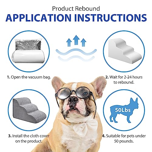- Pet Steps Cleaning: The cover cloth of dog steps can be disassembled and machine washed, the stairs are made of high-density foam, do not need any installation, high resilience, not easy to deform.