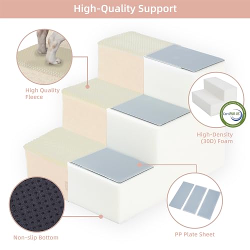 - 🐶PREMIUM QUALITY MATERIALS: Pet stairs made with high-density (30D) foam provide support and comfort. The use of PP plate sheet material is safer than medium-density fiberboard, as it is waterproof, more breathable, and does not easily deform.