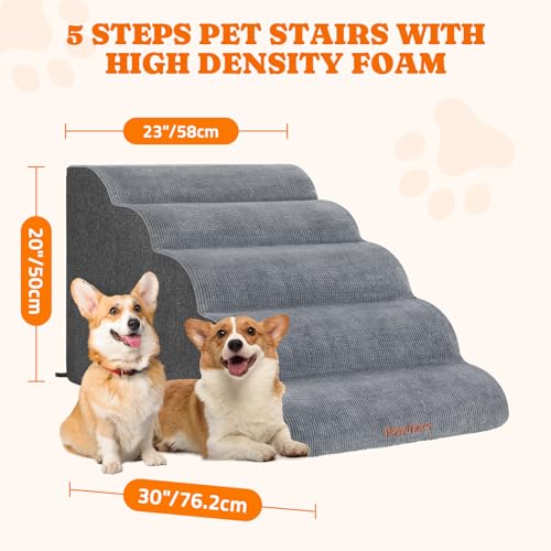 Dog Stairs for Small Dogs: Pawtners 5 Steps Dog Ramp for High Bed, Foam Pet Stairs with for Large Cat and Medium Dogs, Extra Wide Dog Steps for Dogs to Get on Bed for Couch Car Bed Sofa Grey