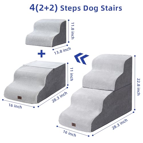 - MORE SAFER,WIDER&DEEPER DOG STEPS – The 4 steps dog stairs size of the pet foam ramp is 16 x28.3×22.8inch,we adpoted extra wide deep ,which can be placed next to the car, bed, and sofa to help pets that are injured or have limited mobility. More and wider steps help reduce pet joints when jumping on the sofa or car pressure,and pettycare dog steps will not shake and slip during use.