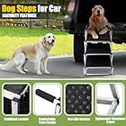 【Non-Slip Surface】These dog stairs for car have been upgraded with a nonslip paw print coating surface, providing excellent traction and preventing dogs from slipping off. The nonslip paw print coating surface allows your dog to confidently walk up and down without the steps sliding around or wobbling. Additionally, the slip-resistant rubber mat attached to the dog stair frames and bottom ensures that the stairs remain steady, offering ultra safety for your pets on slippery surfaces. The safety tether, equipped with a stainless steel carabiner on the tailgate latch, provides double protection for your dogs.