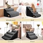 4 Sizes for Dog Steps: 2-Step is 11.8 inches high to help small pets reach a low sofa or stool. 3-step is 15.8 inches high for easy to get on bed or couch. 4-step/20.5 inches and 5-step/22.6 inches high for easy access to a high bed or other high furniture.
