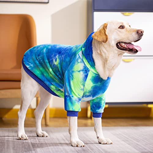 Dog Tie Dye Hoodie, Dog Winter Clothes, Pet Hooded Sweatershirt Pullover, Dog Coat Apparel for Small Medium Large Dogs(Blue Green,4XL-Chest 28”)