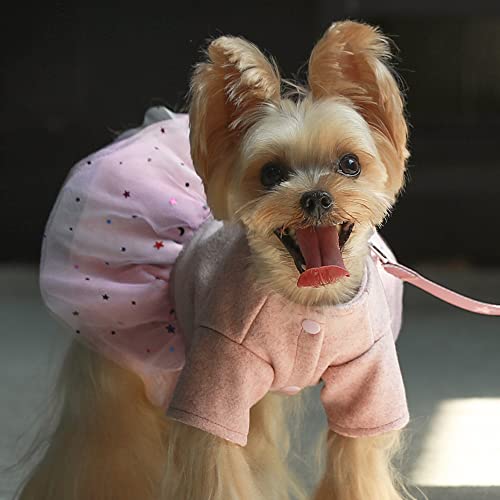 Pink harness dress with D-ring and attached leash, tulle layer with bling sequins presents a princess look. Pretty in any kind of movement.