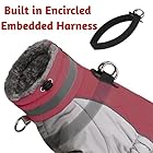 BUILT IN HARNESS AND ZIPPER UP -The absolutely best part of dog winter coat is the zipper up on the back and the built in harness. Dog snow jacket comes with encircled embedded harness traction, more secure, safer, and more convenient. You can use it and not have to add a harness over it. The puppy coat has the rings for attachment of leash.