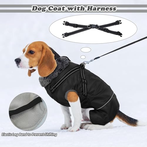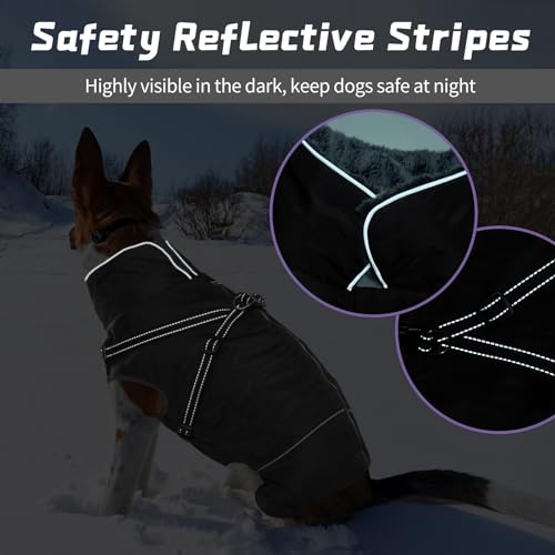 🦮 🦮 Dog Winter Clothes with Harness:Detachable harness on the back provides convenience when you want to walk your dog. Durable straps are adjustable for a comfortable fit,double D-ring can bear the strong pulling strength, convenient and practical.All you need to do is putting on the coat, then a quick clip and go!