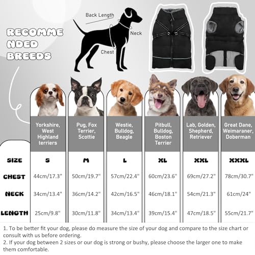 🦮 🦮 Reflective Zip UP Doggy Jacket: Reflective elements on collar,back,and harness straps can keep your pet highly visible in low-light conditions,improves the safety of night walking and bad weather activities.Zipper closure is easy to put on and take off.