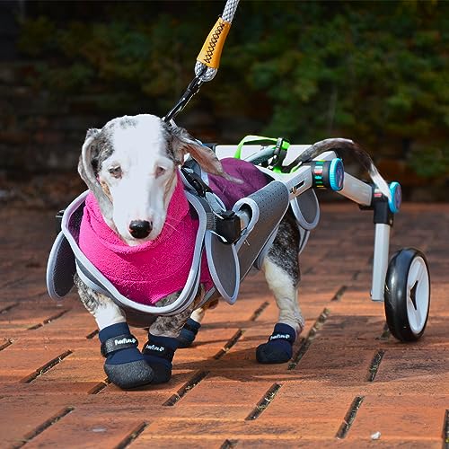 Double dipped Textured rubber socks/boots for durability, Lightweight and Flexible for comfort. Provides the best grip on slippery floors and outdoor snow and icy conditions. Helps senior dogs with traction providing easier mobility around the home and getting up. Super stretchy upper sock for best fit.