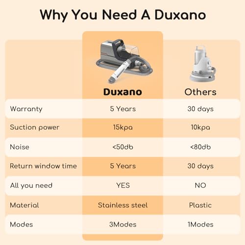 【Strong Suction】 With a brushless motor, DUXANO Pet Grooming Kit provides 15,000Pa of suction power in MAX mode, making it easy to capture ALL of pet hair, debris, dust, and more.