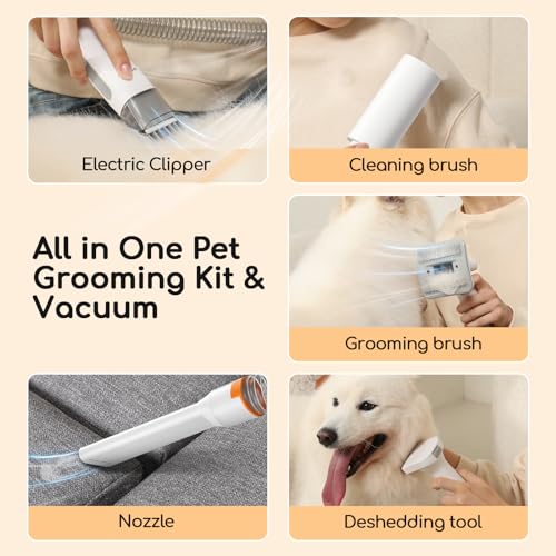 【Perfect Pet Salon at Home】Our Dog Clippers Grooming Kit includes 7 proven tools: Grooming brush,de-shedding brush, electric hair clipper with 6 guard combs, pet trimmer, nail grinder, Nozzle head, cleaning brush. Which can easily help you to give your pet a new look without going to pet grooming Salon.