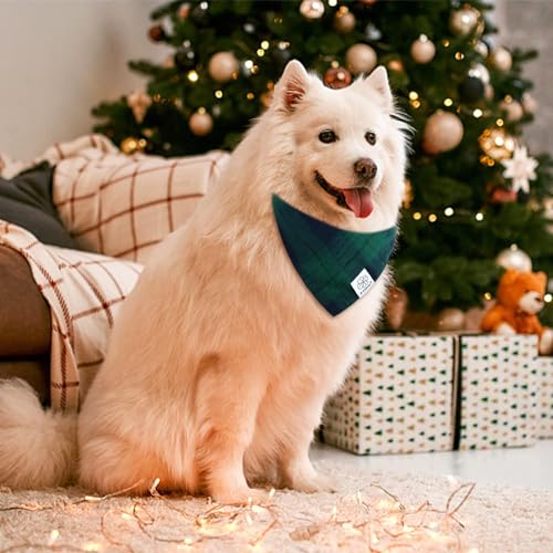 Plaid Dog Bandana Size – 26.7’’x17.7’’x17.7’’ (68cm *45cm *45cm). The adjustable dog bandanas girl fit dog neck size up to 19.7’’ (50cm). You can roll the triangle St. Patrick’s Day dog scarf a couple of times to fit your dog & cats. Please measure your dog’s neck before buying. Green plaid scrunchie is one size fits all.