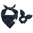 Matching Bandana and Scrunchie Set: It’s full of love when your pets is wearing the dog scarf and you are wearing the bow scrunchies. When traveling, sleeping, taking photos or daily walking, adorable dog bandana and plaid scrunchie is a pretty accessories. The scrunchie can be worn as a wrist accessory and hold your hair. Beautiful dog drool bibs and bow scrunchie with green and blue tartan pattern, it’s nice photo props for holiday.
