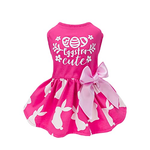 Eggstra Cute Dog Easter Outfit, Bunny Dog Dress, Holiday Dog Clothes for Small Dogs Gril, Pet Cat Clothing, Hot Pink, Small