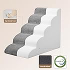 MULTIPLE STEP SIZES – This dog stair has 2 steps, 3 steps, 4 steps and 5 steps to choose. Our 2-step stairs fits for chair/sofa/bed up to 13inch. 3-step stairs fits for chair/sofa/bed up to 17inch. 4-step stairs fits for chair/sofa/bed up to 21inch. And 5-step stairs fits for chair/sofa/bed up to 24inch.