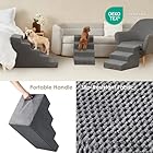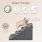 - Low Ramp: This dog stairs for small dog has a low slope design, which is more friendly to injured dogs or aged dogs. And filled with 33D high resilience foam and equiped with PP hollow board to provide better support for your pet.