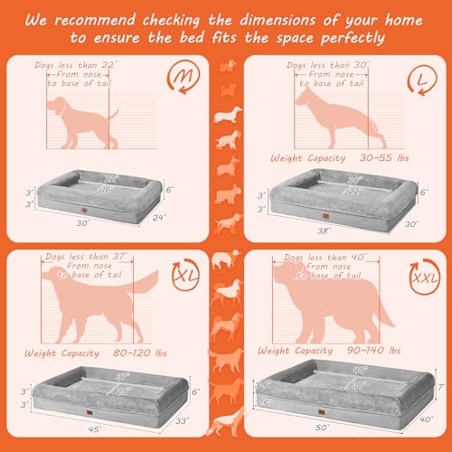 PROPRIETARY FOAM FILLED BOLSTER: EHEYCIGA dog bed with sides applies 3″ high-density egg-crate memory foam and 3″ foam filled bolster to support your pup’s head for additional sense of security, joy and relaxation. You will see your pets become less nervous and sleep better with EHEYCIGA dog couch bed.