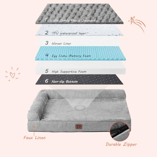 L-SHAPED DESIGN – EHEYCIGA orthopedic dog bed has a specific and unique l-shaped design, which provides extra support for your pet’s neck and head so that your furry friend can have a more restful sleep.