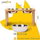 Troublesome to Clean? Our raised dog bowl stand is made from bamboo which have high water resistance properties. Just wipe the dog feeders with rags, or rinse with water. 2 premium quality stainless steel food and water bowls for small dogs are easy to clean and 100% dishwasher-safe. Set includes double bowls with 6 cup (48oz).