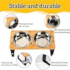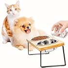🥇【Exceptional Quality & Long-Time Use】The elevated cat bowls are made of food-grade stainless steel, the board of the cat bowl stand is made of natural bamboo, polished to a smooth and burr-free finish, odorless, durable, and waterproof, making cleaning a breeze. With 2 mm thick metal legs, It makes the structure of the dog bowl fixed and stable.