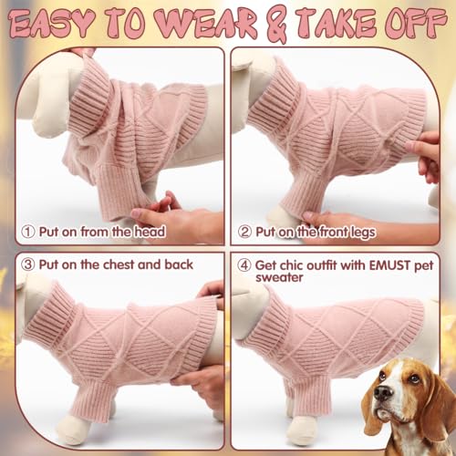 [PRACTICAL DESIGNS] EMUST pet sweaters have characters of comfort and style. The turtleneck and sleeves design provide extra warmth for pets in cold days. And also the higher cut gives pets the convenience to relieve themselves.