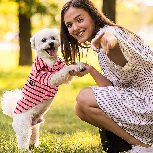 🐾【Premium Materials】Our dog polo shirts are very good quality. The fabric of our dog shirts is super soft and skin-friendly, that is breathable and lightweight. The dog summer shirt ensures freshness for your dog during extended periods of wear, provide a comfortable wearing experience for your furry friends.