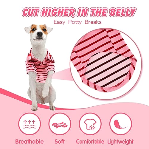 🐾【Unique Design】Lapel collar can prevent your dog T-shirt from slipping off due to collar deformation. The heart embroidery on the collar and classic stripe design add a touch of fashion to your lovely friend’s wardrobe. High cut of the abdomen makes it easy for dogs to go to the bathroom.