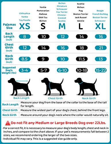 Fit Small Dog Breeds, our pet’s jammies come with multi sizes, measure your doggies and kitten and follow our Size Chart to find a better fit for your furry friends. We recommend ordering a larger size if measurements between 2 sizes.