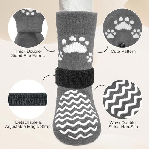 Anti-slip bottom: Double-sided, round dotted grips provide professional-grade protection against falls and slips, even if the sock twists while your pet wears them.