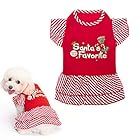 CUTE APPEARANCE: Overall Christmas red color, featuring red striped ruffled hem and short sleeve design, and printed with the words “Santa’s Favorite”, making your pet look more attractive.