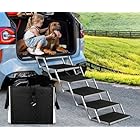 ✅【More Sturdy and Durable】: This aluminum frame foldable dog stair with the hollow first steps weighs only 11.1lbs, but is built to last and support up to 150lbs, while each step is incredibly durable and can withstand heavy-duty use. Although each step is incredibly durable and withstand heavy-duty use, the structure is stable and not easy to shake when your dog is climbing, which is strong,stable and sturdy enough for your small to large dog’s everyday use .