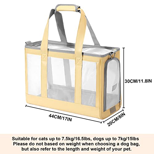 Pet Tote Carrier Bag: The size of this dog carrier bag is 17” x 8” x 11.8”. Recommend for pets up to 15lbs ( Please measure the size and weight of your pet before purchasing this product, don’t choose just based on your pet’s weight), is suitable for small dogs and cats.