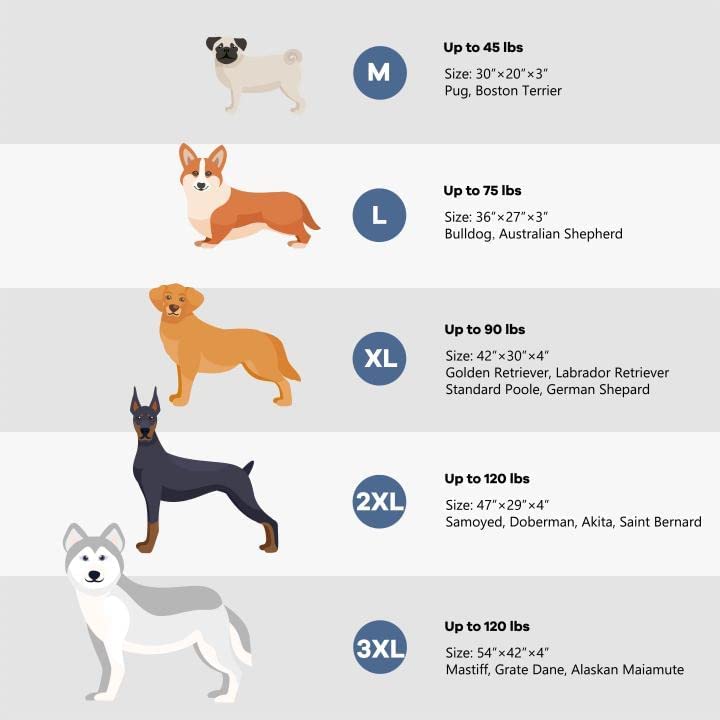 🐕【SIZE REFERENCES】Medium dog beds 28 x 23″ x 6.5″ (3.5″ bolstered side pillow) for Small dogs, Large dog beds 36 x 27″ x 6.5″ (3.5″ bolstered side pillow) for medium dogs, Extra Large dog beds 42 x 30″ x 7.5″ (3.5″ bolstered side pillow) for medium, large dogs up to 90lbs, Jumbo dog bed 50 x 36 x 7.5″ (3.5″ bolstered side pillow) for pets up to 120 lbs.