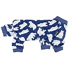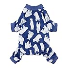 Blue doggy jammies with all over polar bear prints for extra cuteness. The four-leg ribbed cuffs provide all-coverage, offering more warmth and protection to keep your pet cozy.