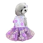 Flower Lace Dog Dress Cat Princess Suspender Costume Puppy Tutu Floral&Bow Clothes Puppy Embroidery Skirt for Cats Teddy Dog Small Medium Dogs (Purple, M (Chest Circumference 42cm/16.6″))