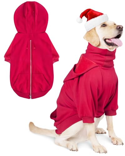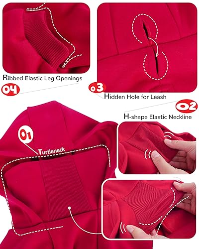 MATERIAL: 95% cotton fabric with 5% spandex. High-quality stretch fabric with fleece lining. A Soft, breathable, and elastic dog hoodie with a turtleneck for better warmth.
